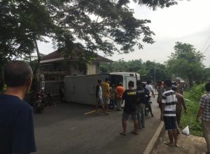 Akibat Motor : Bus Damri Terguling, Dua Orang Meninggal Ditempat